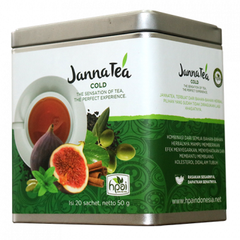 JannaTea Cold adalah teh dengan sensasi Timur Tengah, terbuat dari bahan-bahan herbal pilihan yang sudah tidak diragukan lagi khasiatnya. Kombinasi dari semua bahan-bahan herbalnya mampu memberikan sensasi menyegarkan. KOMPOSISI: Daun tin Daun zaitun Peppermint Biji habbatusauda Daun bidara Kayu manis Kapulaga