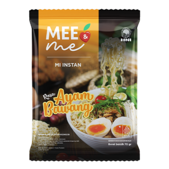 Mi Instan Rasa Ayam Bawang CARA PENYAJIAN Rebus mi dalam 350 ml air mendidih dan aduk pelan-pelan selama 3 menit. Tuangkan bumbu bubuk, bumbu minyak dan cabe bubuk ke dalam mangkok. Tuangkan mi dan kuahnya ke dalam mangkok, aduk dengan bumbu hingga rata. Mi lezat siap disajikan. Berat Bersih 70 gr/kemasan